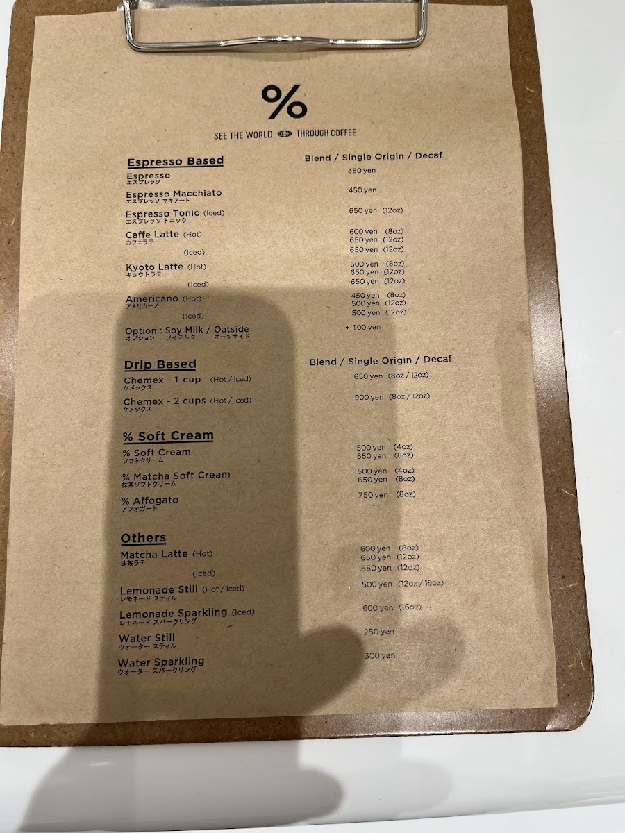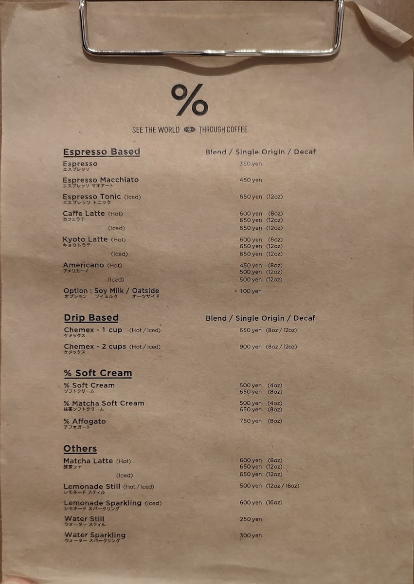 %ARABICA Tokyo Azabudai Hills B1F Menu